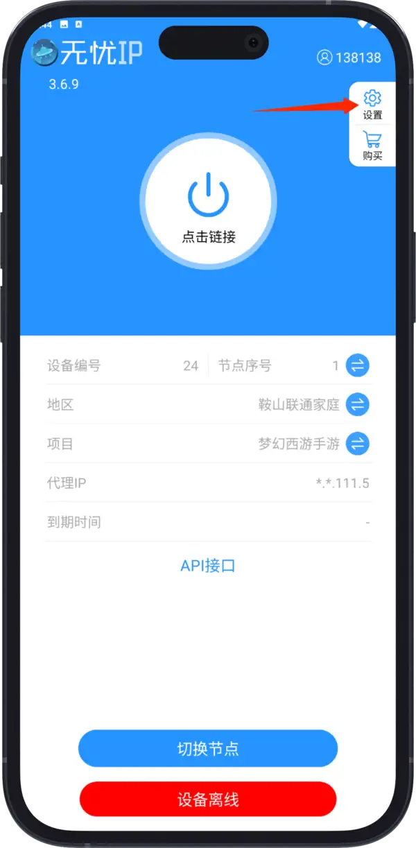 打开 无忧IP APP,第一次打开会提示访问权限,全部允许。