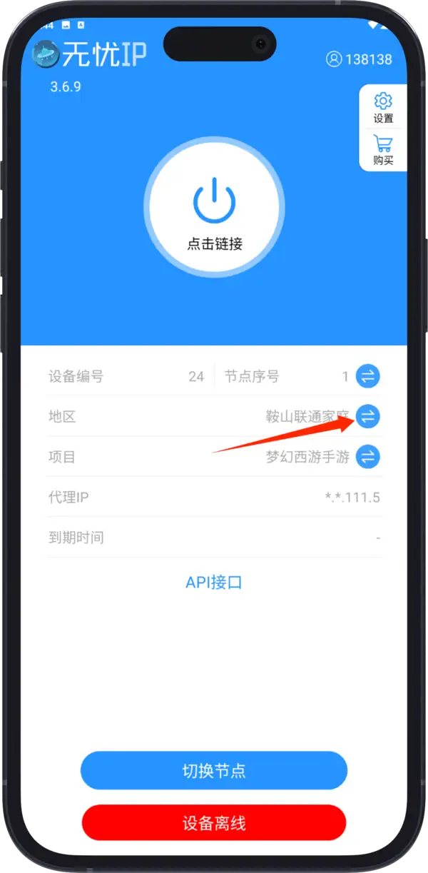 点击 APP上的断开,然后点击切换IP