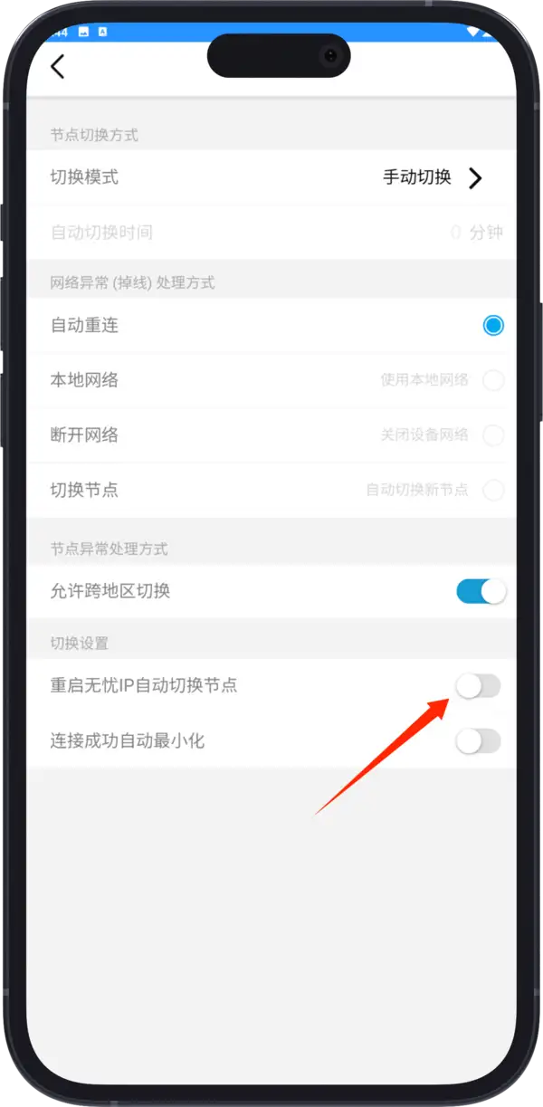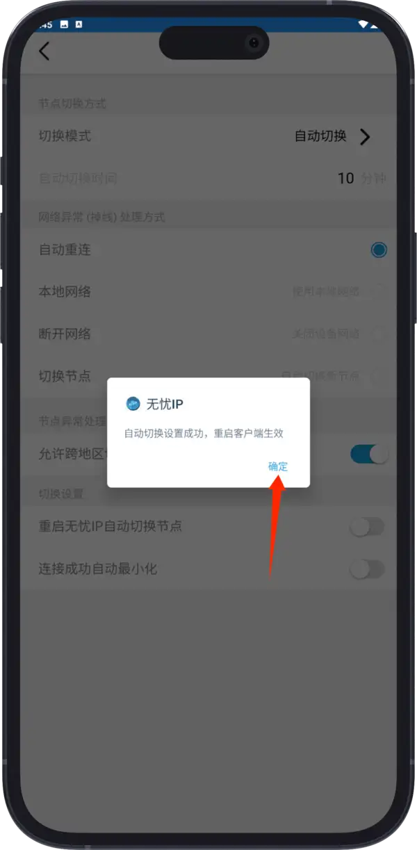 把 重启无忧IP自动切换节点 勾上就可以了。
