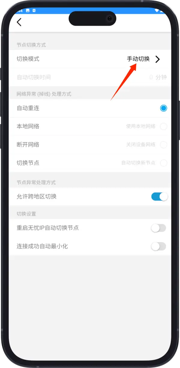 点击切换规则,选择切换模式,根据自己需求选择,例如需要改成自动切换,10分钟换一次IP。