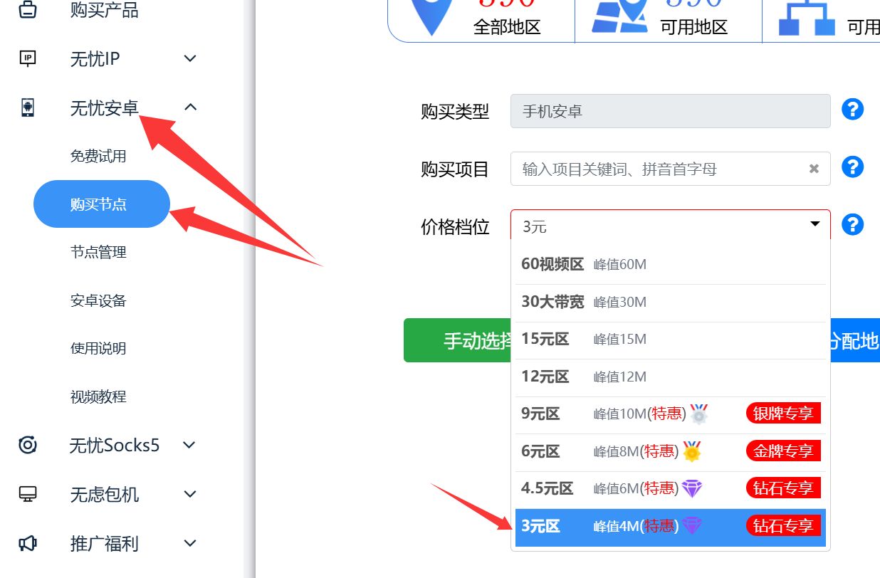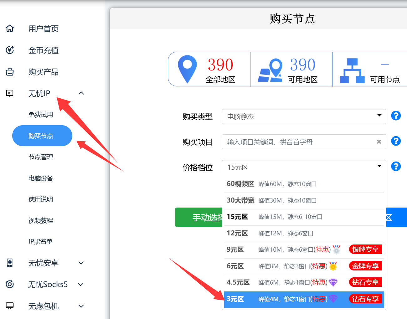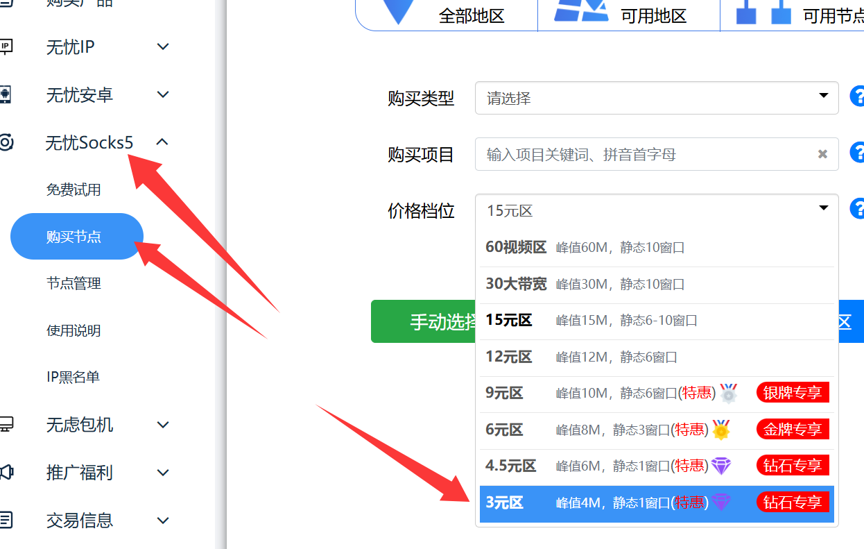 无忧IP新增3元地区,可购买电脑静态、电脑动态、手机安卓、socks5、http。