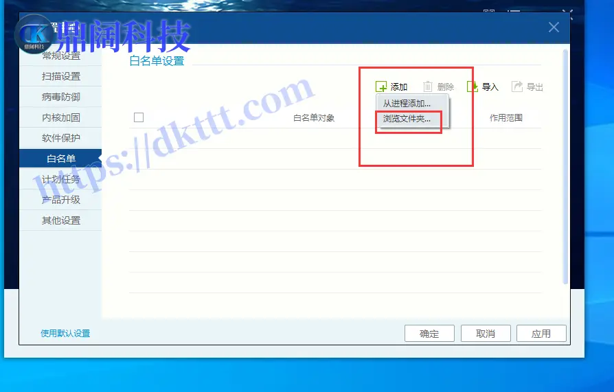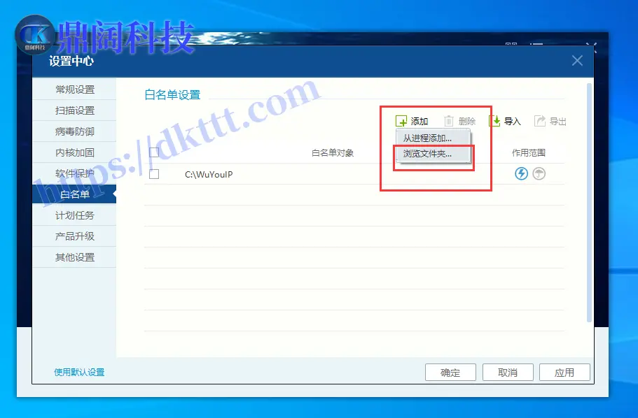 杀毒软件添加排除项