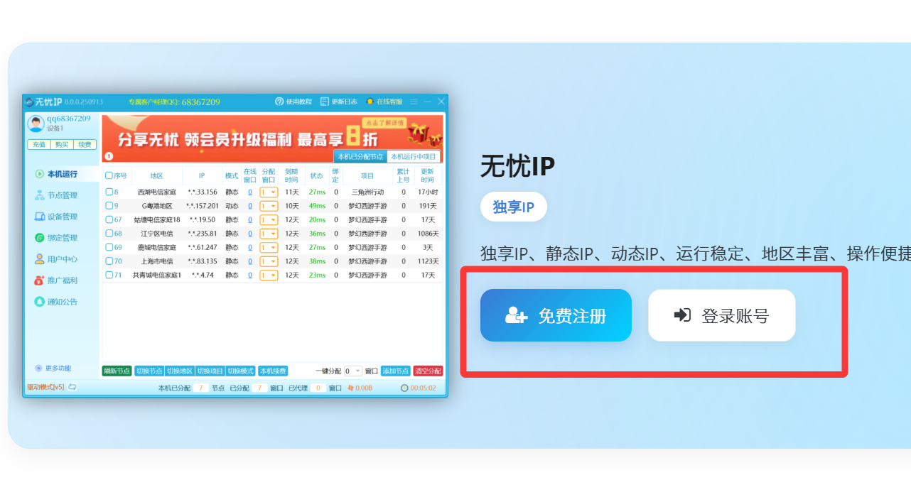 如果要进入不同产品的登录或注册页面,按照下方步骤操作,右上角默认登录及注册的是“无忧IP”。